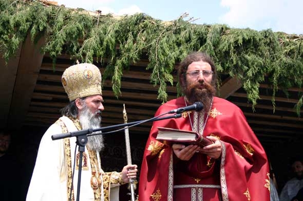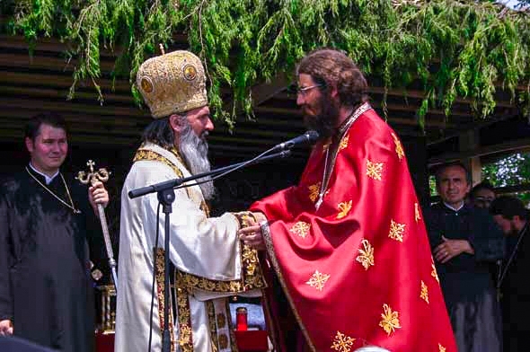 Rugăciunea şi ajutorul Sfântului acoperă mănăstirea că un clopot protector. Părintele Iustin Petre e convins de acest lucru şi nu încetează să se uimească. La 26 de ani, e printre cei mai tineri stăreţi din ţară. Doi ani îl despart de frumoasă perioada de studenţie de la Cluj dar, în realitate, de atunci pare să fi trecut o viaţă de om. Ochii lui albaştri, păstrând încă brumă de oboseală a slujbei de noapte, cercetează un punct imprecis, pierdut în depărtarea ferestrei. De loc e din Bucovina, provenind dintr-o familie de ţărani credincioşi.